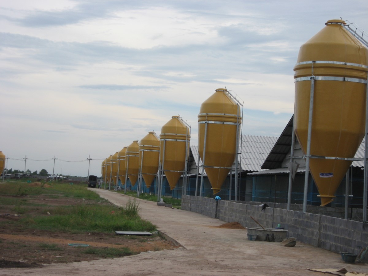 วัสดุ FRP ขึ้นรูปชิ้นเดียวขนาดเป็นตัน ไม่เปลืองพื้นที่ ลดการสูญเสียกันความร้อนได้ดี ช่วยรักษาคุณภาพสารอาหารดี ป้องกันแมลง หนู น้ำเข้า ทนการกัดกร่อน ไม่เป็นสนิม ไม่สึกหรอภายในเรียบอาหารไม่จับตัวเป็นก้อน รูปลักษณ์สวยงาม ติดตั้งง่าย สามารถติดตั้งอุปกรณ์ระบบให้อาหารแบบอัตโนมัติ